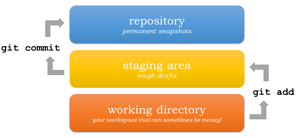 git status$ git statusOn branch masterNo commits yetnothing to commit (create/copy files and use "git add" to track)git status$ git statusOn branch masterNo commits yetnothing to commit (create/copy files and use "git add" to track)$ echo "My Analysis" > README$ git statusOn branch masterNo commits yetUntracked files: (use "git add <file>..." to include in what will be committed) READMEnothing added to commit but untracked files present (use "git add" to track)git status said, we can use git add to track a file$ git add README$ git statusOn branch masterNo commits yetChanges to be committed: (use "git rm --cached <file>..." to unstage) new file: READMEgit status said, we can use git add to track a file$ git add README$ git statusOn branch masterNo commits yetChanges to be committed: (use "git rm --cached <file>..." to unstage) new file: READMEgit commit$ git commit[master (root-commit) b3d8a54] Add README 1 file changed, 1 insertion(+) create mode 100644 READMENote: git commit opens up your default editor, most likely vim.