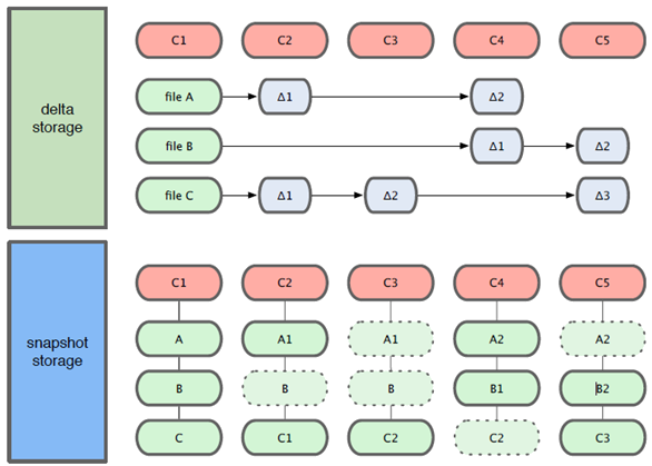 Everything in Git is referenced by (and validated via) cryptographic hashes